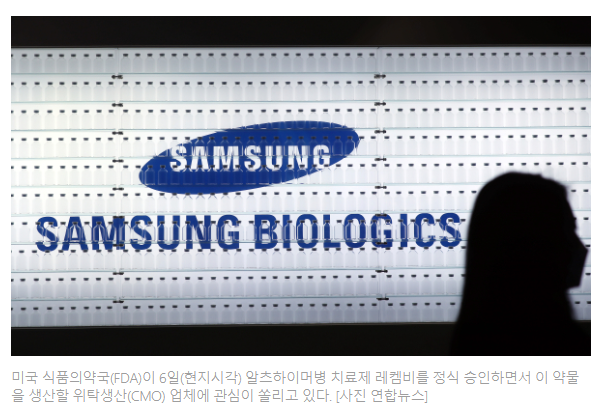 레켐비의 정식 승인 소식에 국내 의약품 위탁개발생산(CDMO) 기업인 삼성바이오로직스도