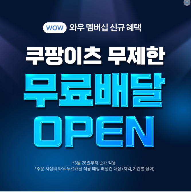 쿠팡이츠가 오는 26일부터 쿠팡의 유료 멤버십인 ‘와우회원’을 대상으로