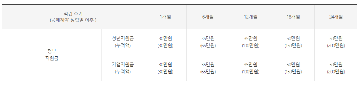 -2021청년내일(추경), 2022년~2023년 유형 가입자: 계약성립일로부터 공제가입기간(24개월 간) 근속 후 "청년(핵심인력) 자기부담금, 취업지원금, 기업기여금"이 모두 적립된 경우