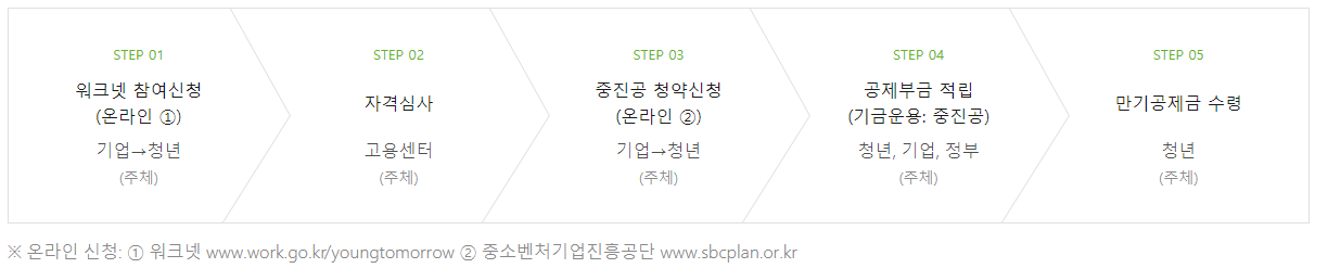신청시기 :부담금 및 지원금이 모두 적립된 이후 내일채움공제 홈페이지(www.sbcplan.or.kr)를 를 통해 신청